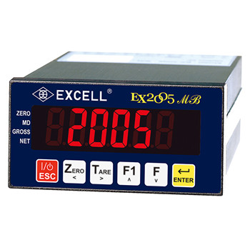 臺灣智慧物聯秤重解決方案領導廠商 - 英展 (EXCELL) 持續致力于研發與制造一系列創新、高效能且可靠的工業和商業秤重產品,推出新一代新一代直流電源自動控制重量顯示器 『EX2005MB』,搭載六位數紅色LED顯示(字高 16mm),可顯示 kg、 g、t、lb 等重量單位; 并可做毛重 、 凈重 、累計重量 、累計次數之切換顯示。并采用高性能A/D接口,擁有0.12 μVD 高靈敏度、每秒120次之最高取樣速度、 量測范圍達 -0.1mV/V~4.0mV/V。EX2005MB 采用可調式數字濾波器,可有效抑制現場環境所產生之震動,穩度度高。其靈活的校正方式可做一般2點校正或5點線性校正,并可直接輸入或讀出電壓值m V/V,不需實際重量之負載,便于維護。