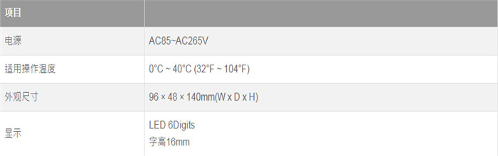 ? 面板尺寸96 x 48 mm 前面板具IP65潑水防護, 不占空間。