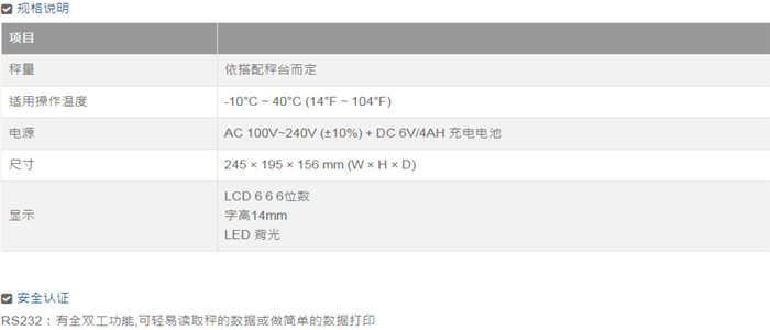 檢定分度數:nind=3000 ,外部顯示精度取決于搭配秤臺傳感器精之度