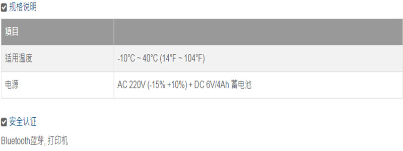 自動校正功能、自動零點追蹤、低電力及充電狀態顯示。