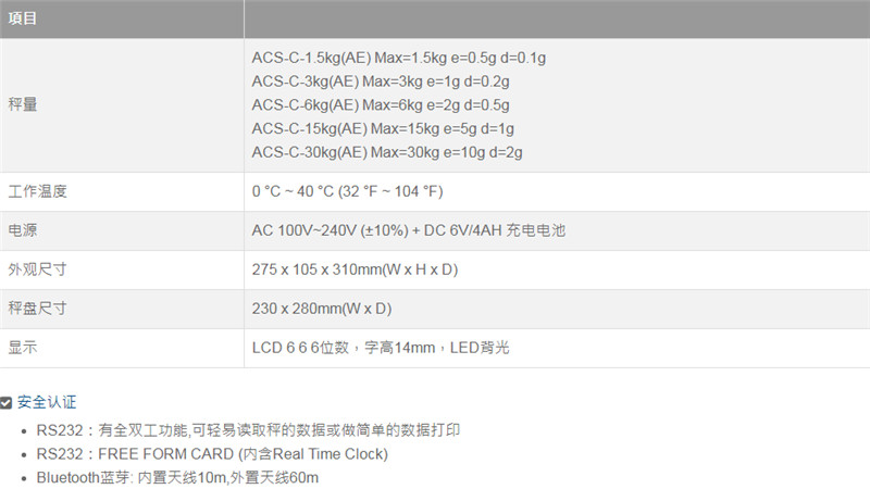 具有10組PWLU (preset unit weight preset tare look up)記憶功能。